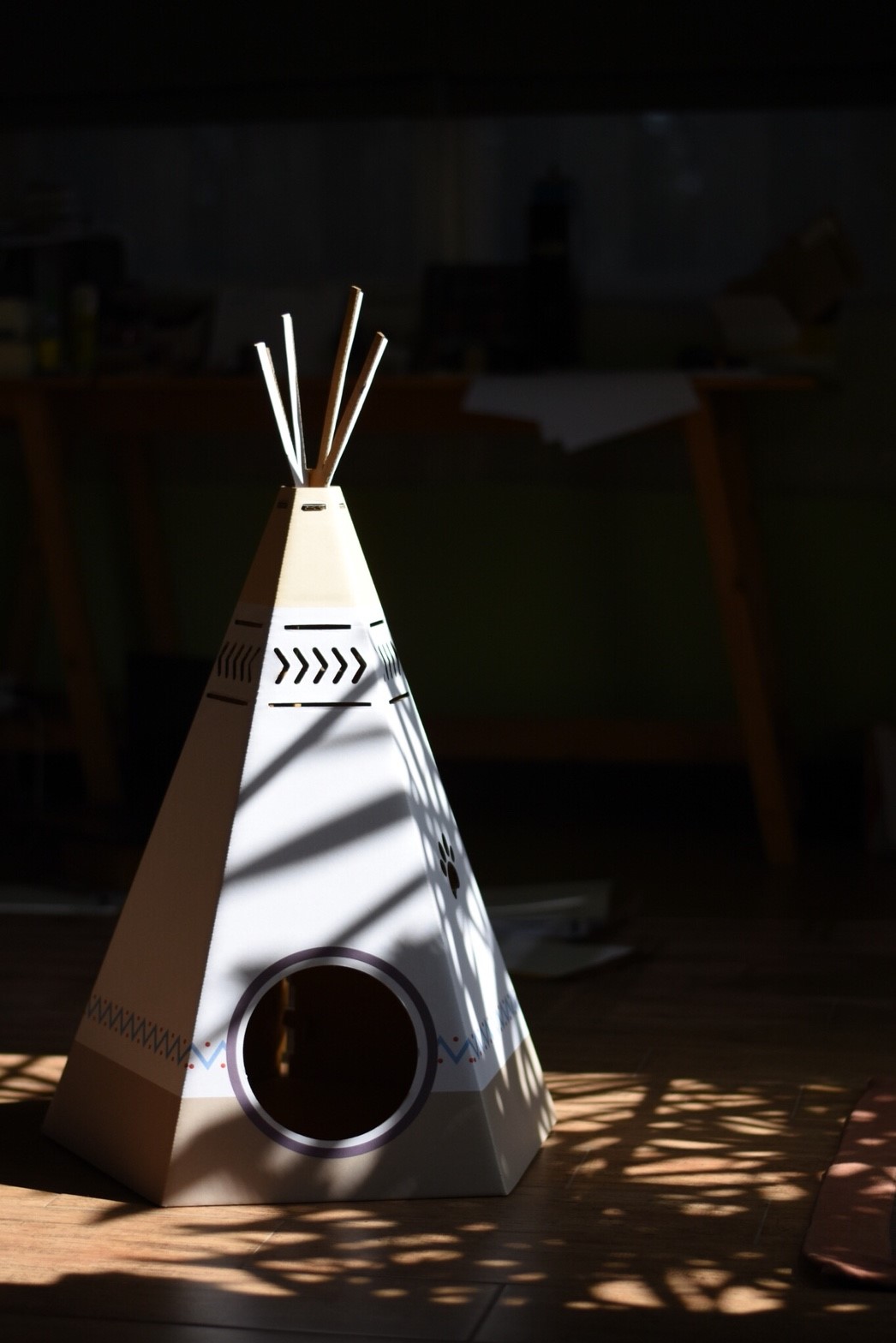 การออกแบบหน้าต่างหรือทางเข้า (อย่างเช่นวงกลมที่เห็น) ก็ต้องคำนวณระยะขอบที่แข็งแรง (Reinforced Edge) เพื่อป้องกันการฉีกขาดง่ายเมื่อแมวเข้าออกบ่อย ๆ